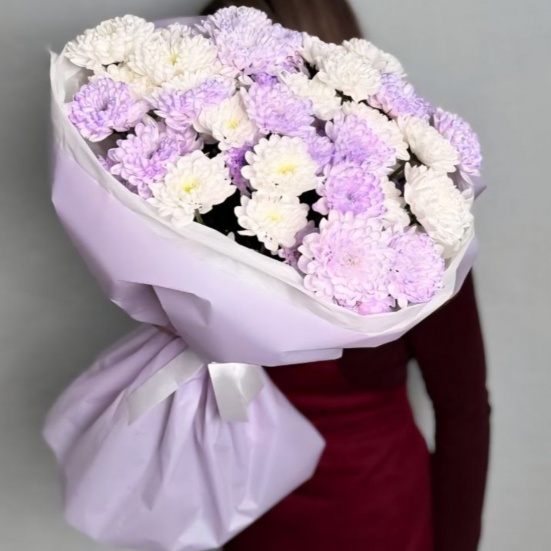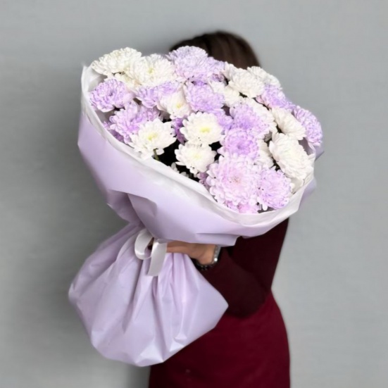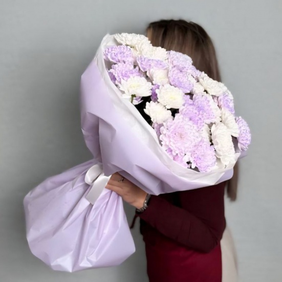 Букет из 9 фиолетовых и белых хризантем в Волгограде